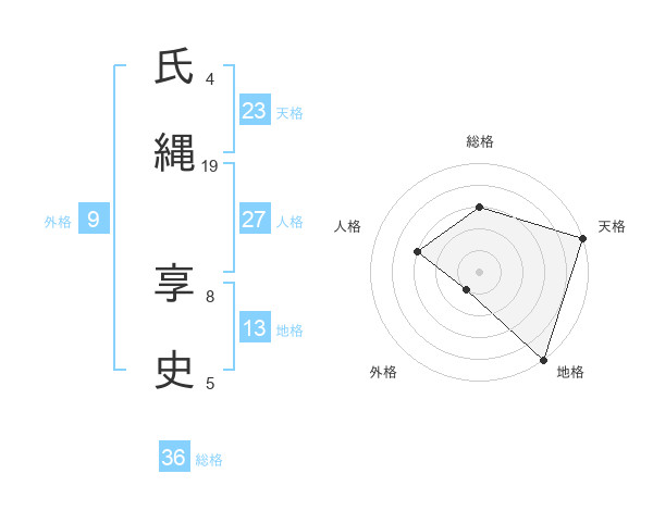 氏縄 享史さんの総格は36画の3点!