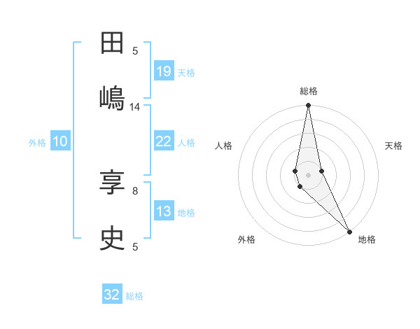 田嶋 享史さんを姓名の画数から五運を鑑定