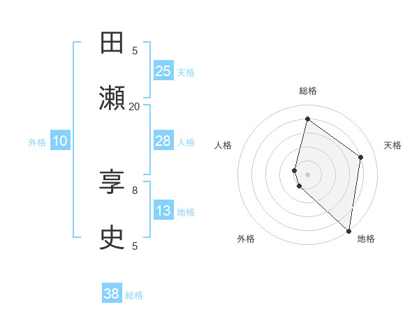 田瀬 享史さんの総格は38画の4点!