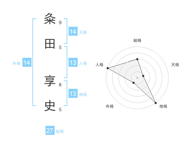 粂田 享史さんの地格は13画の5点!