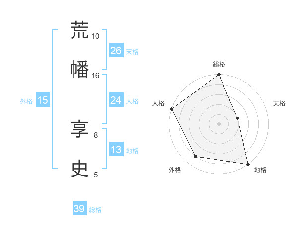 荒幡 享史さんの総格は39画の5点!