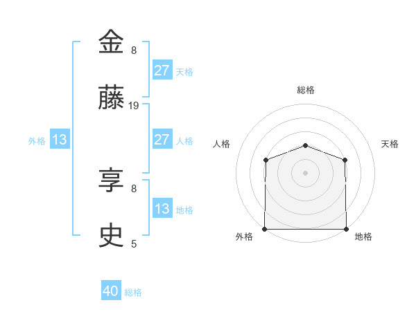 金藤 享史さんの外格は13画の5点!