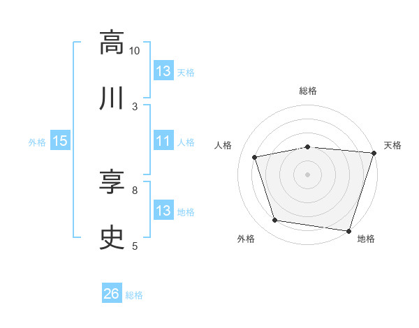 高川 享史さんの天格は13画の5点!