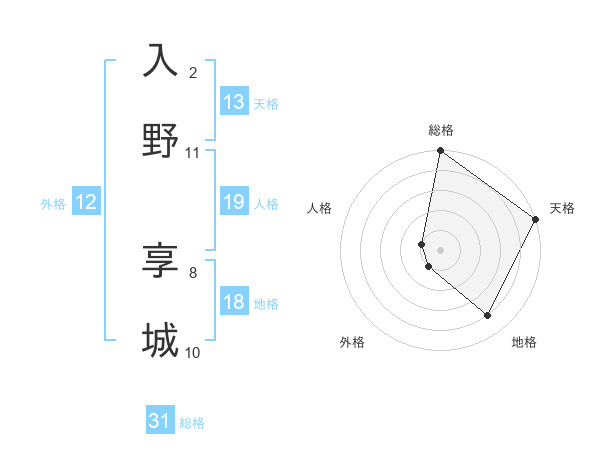 入野 享城さんの総格は31画の5点!