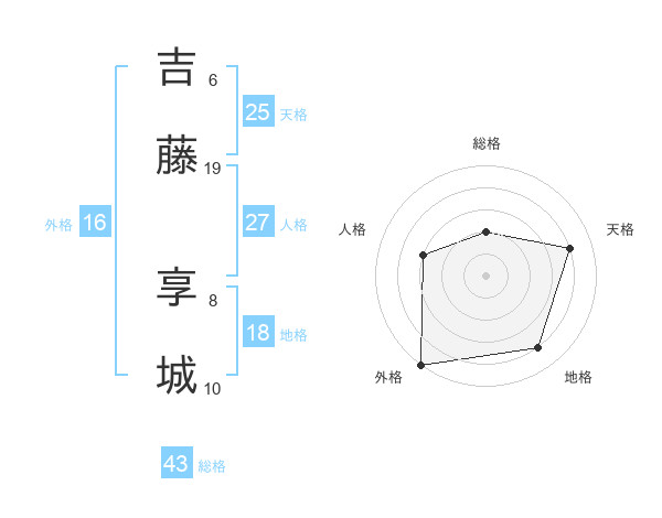 吉藤 享城さんの天格は25画の4点!