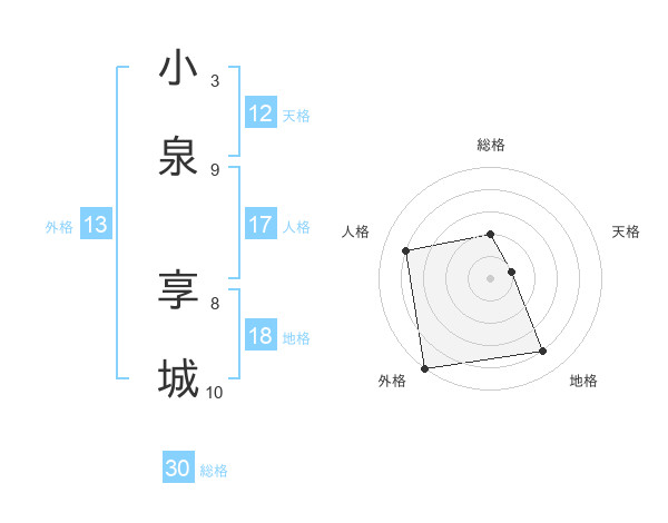 小泉 享城さんの総格は30画の2点!