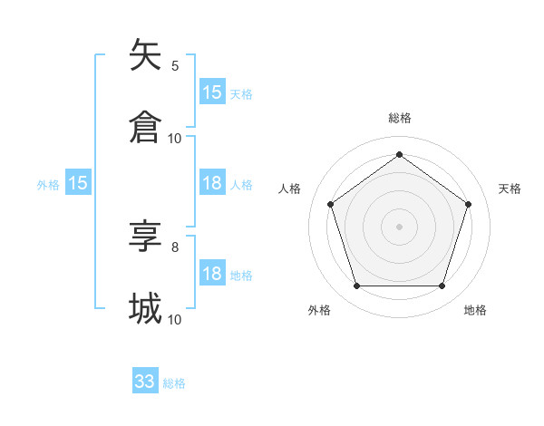矢倉 享城さんを姓名の画数から五運を鑑定