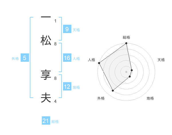 一松 享夫さんの総格は21画の5点!