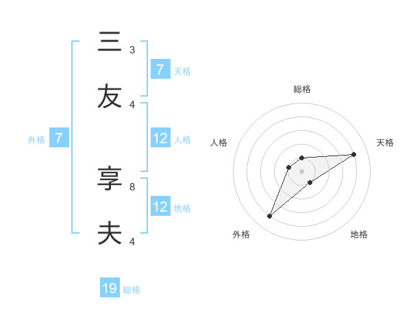 三友 享夫さんの天格は7画の4点!