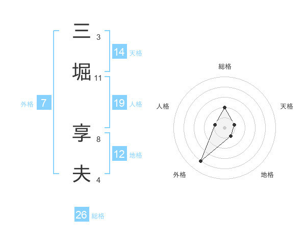 三堀 享夫さんの天格は14画の1点!
