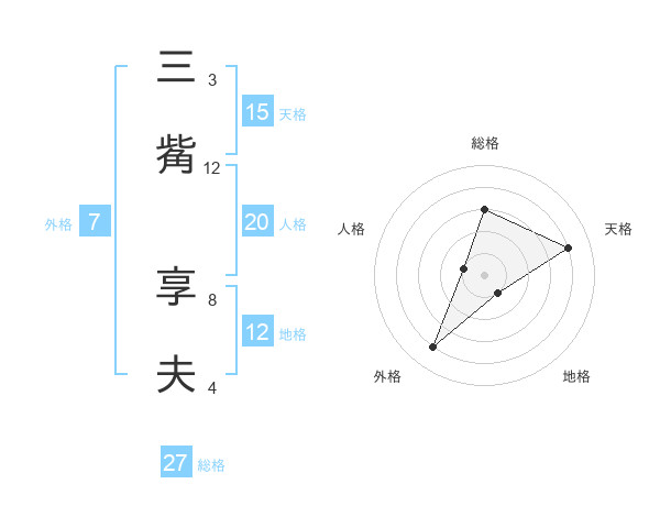 三觜 享夫さんの総格は27画の3点!