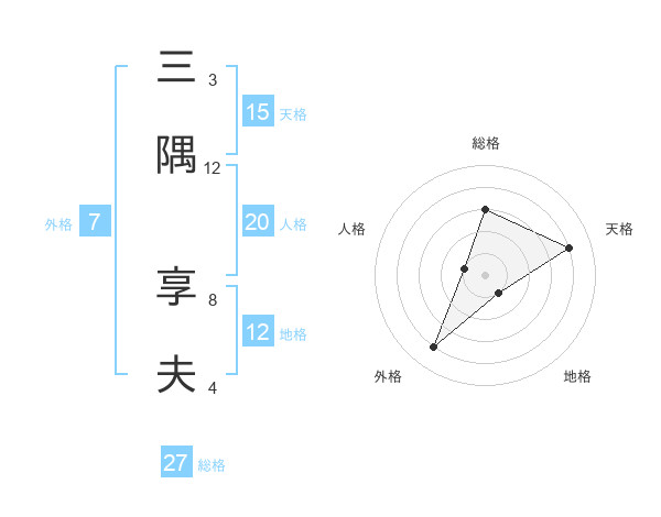三隅 享夫さんの天格は15画の4点!