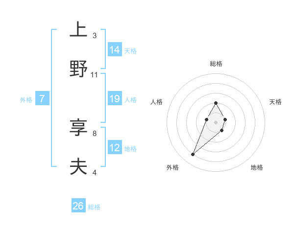 家系が持つ宿命的な運勢を表します。祖先から受け継いだ苗字ですので自分の力が及びません。家柄を象徴します。