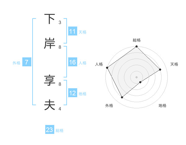 下岸 享夫さんの天格は11画の4点!