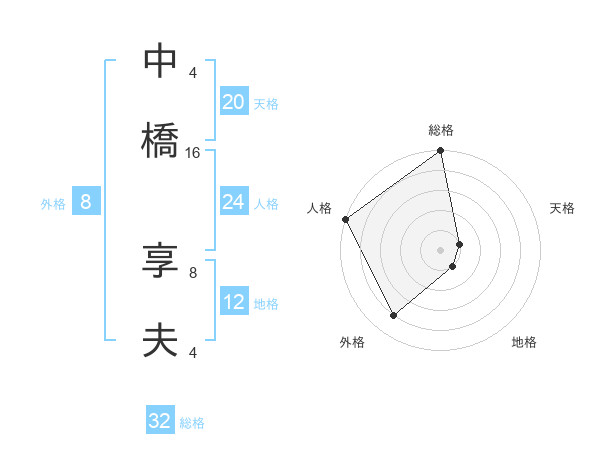 中橋 享夫さんの総格は32画の5点!