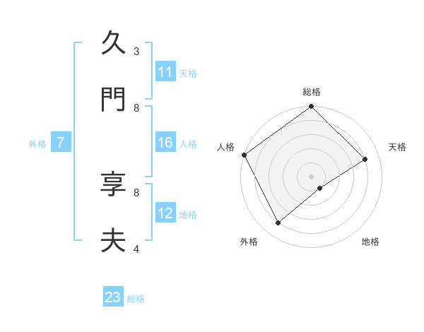 久門 享夫さんの総格は23画の5点!