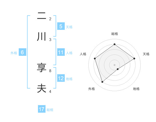 二川 享夫さんの総格は17画の4点!