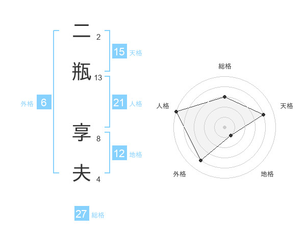 二瓶 享夫さんの天格は15画の4点!