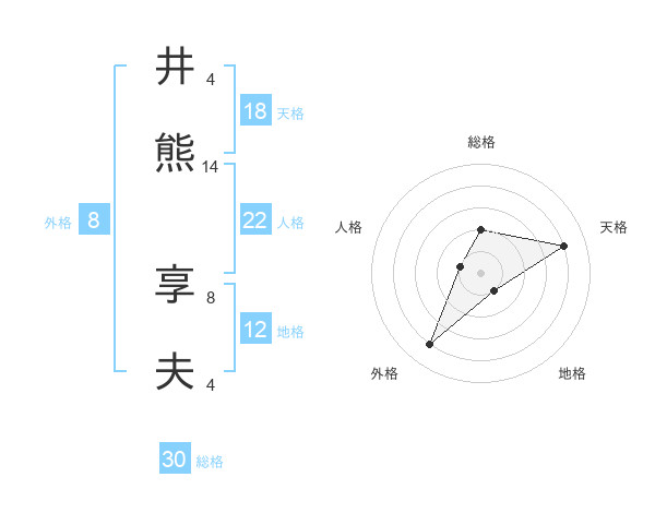井熊 享夫さんの外格は8画の4点!