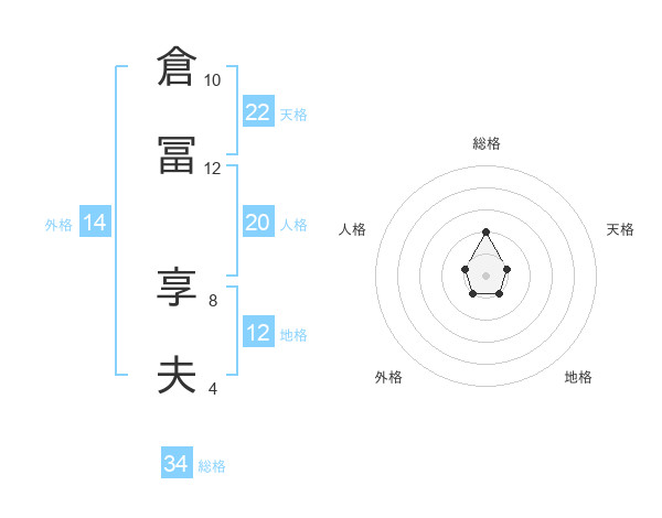 倉冨 享夫さんの天格は22画の1点!