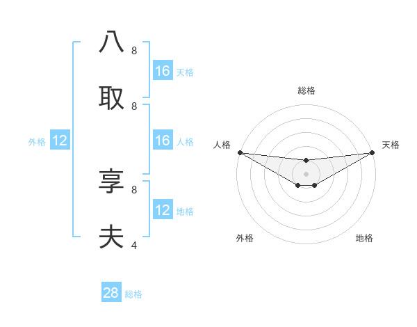 八取 享夫さんの天格は16画の5点!