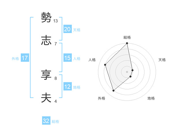 勢志 享夫さんの総格は32画の5点!
