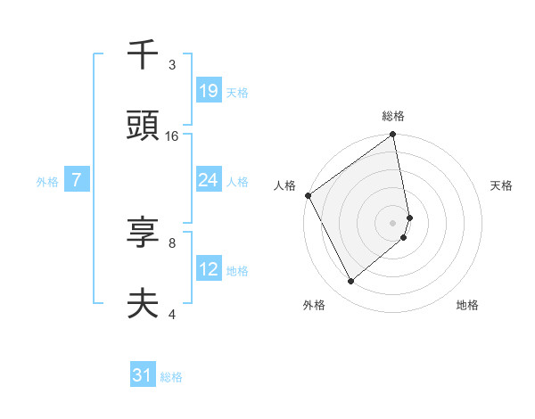 千頭 享夫さんの総格は31画の5点!