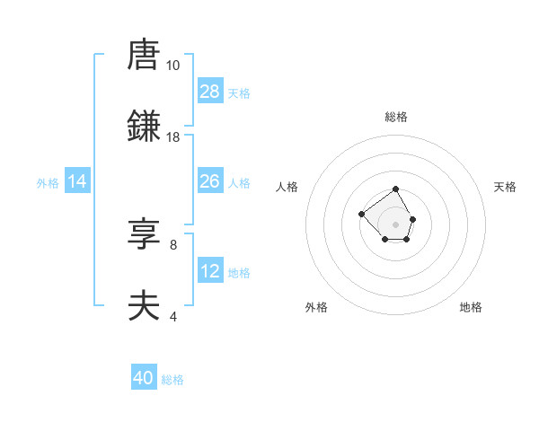 唐鎌 享夫さんの総格は40画の2点!