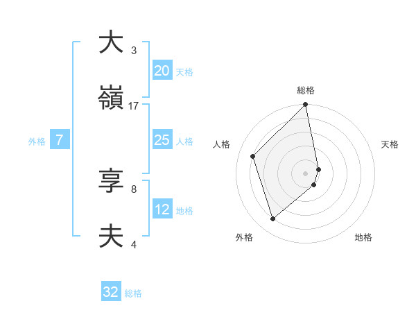 大嶺 享夫さんの総格は32画の5点!