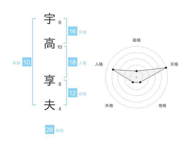 宇高 享夫さんの天格は16画の5点!