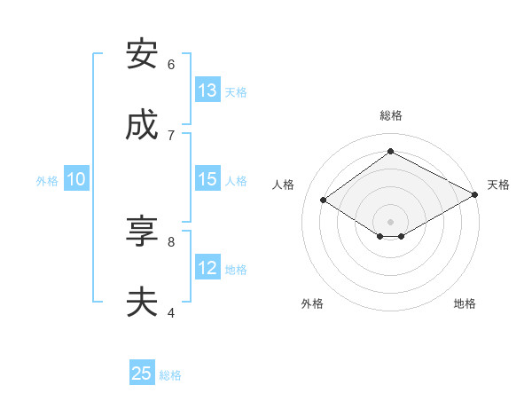 安成 享夫さんの天格は13画の5点!