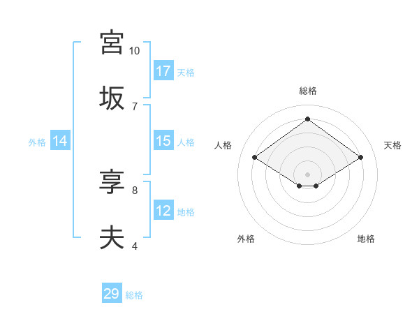 宮坂 享夫さんを姓名の画数から五運を鑑定