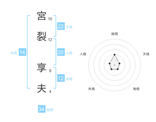 宮裂 享夫さんの天格は22画の1点!