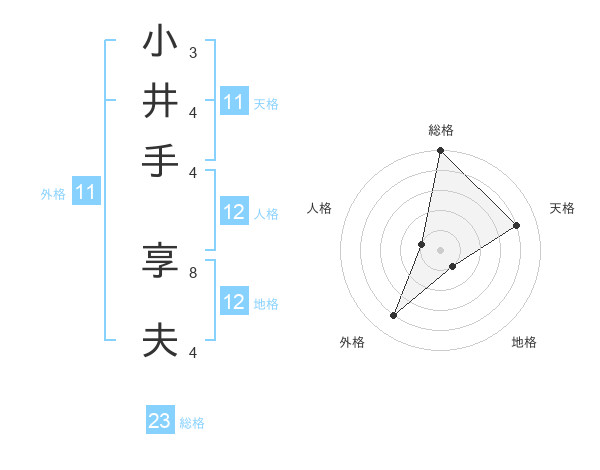 小井手 享夫さんを姓名の画数から五運を鑑定
