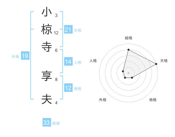 小椋寺 享夫さんの天格は21画の5点!