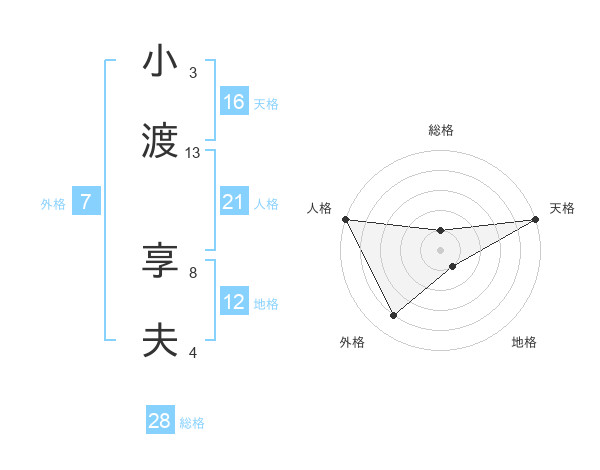 小渡 享夫さんを姓名の画数から五運を鑑定
