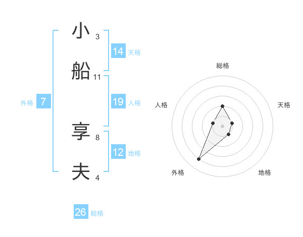 小船 享夫さんの総格は26画の2点!
