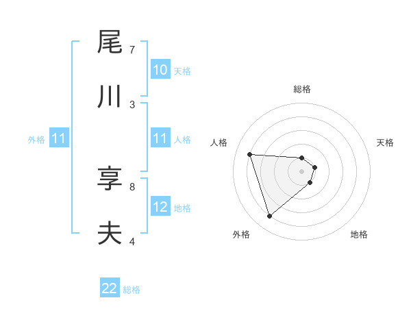 尾川 享夫さんの人格は11画の4点!