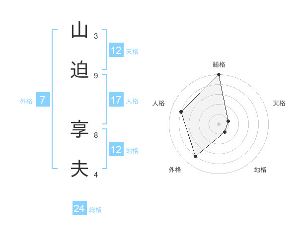 山迫 享夫さんの天格は12画の1点!