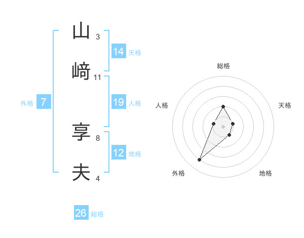 山﨑 享夫さんの外格は7画の4点!