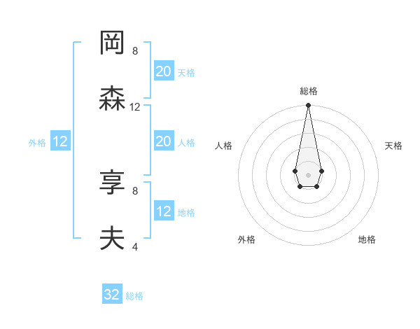 岡森 享夫さんの総格は32画の5点!