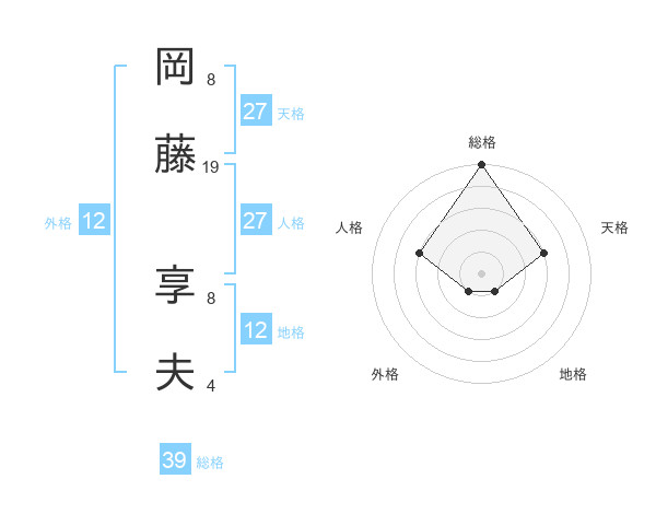 岡藤 享夫さんを姓名の画数から五運を鑑定