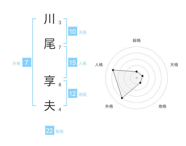 川尾 享夫さんを姓名の画数から五運を鑑定
