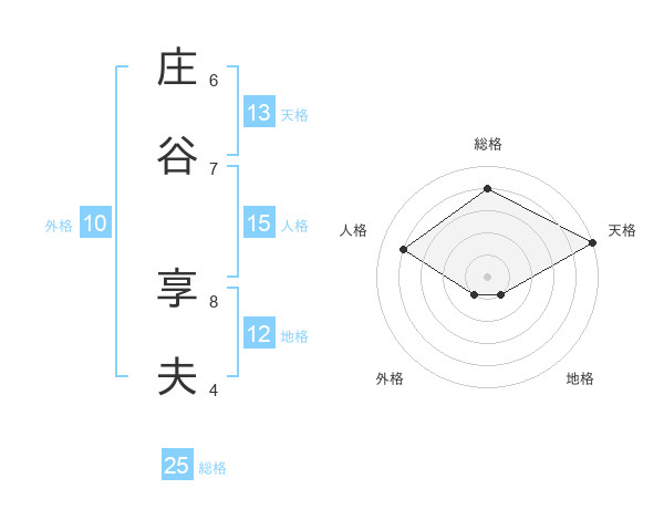庄谷 享夫さんの総格は25画の4点!