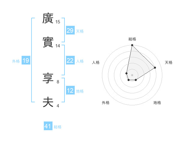 廣實 享夫さんを姓名の画数から五運を鑑定