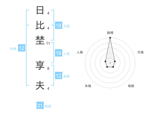 日比埜 享夫さんを姓名の画数から五運を鑑定