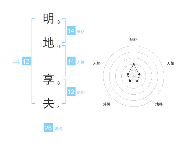 明地 享夫さんの天格は14画の1点!