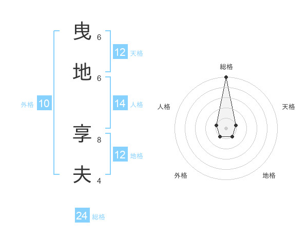 曳地 享夫さんの総格は24画の5点!