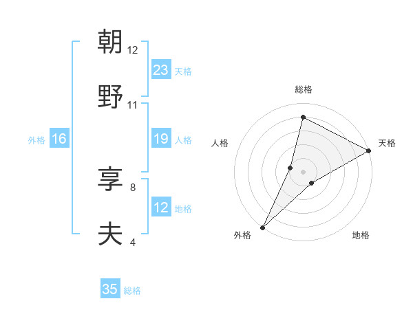 朝野 享夫さんを姓名の画数から五運を鑑定