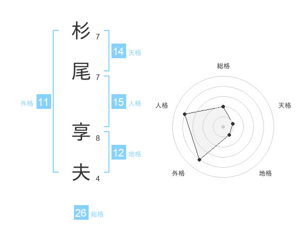 杉尾 享夫さんの天格は14画の1点!